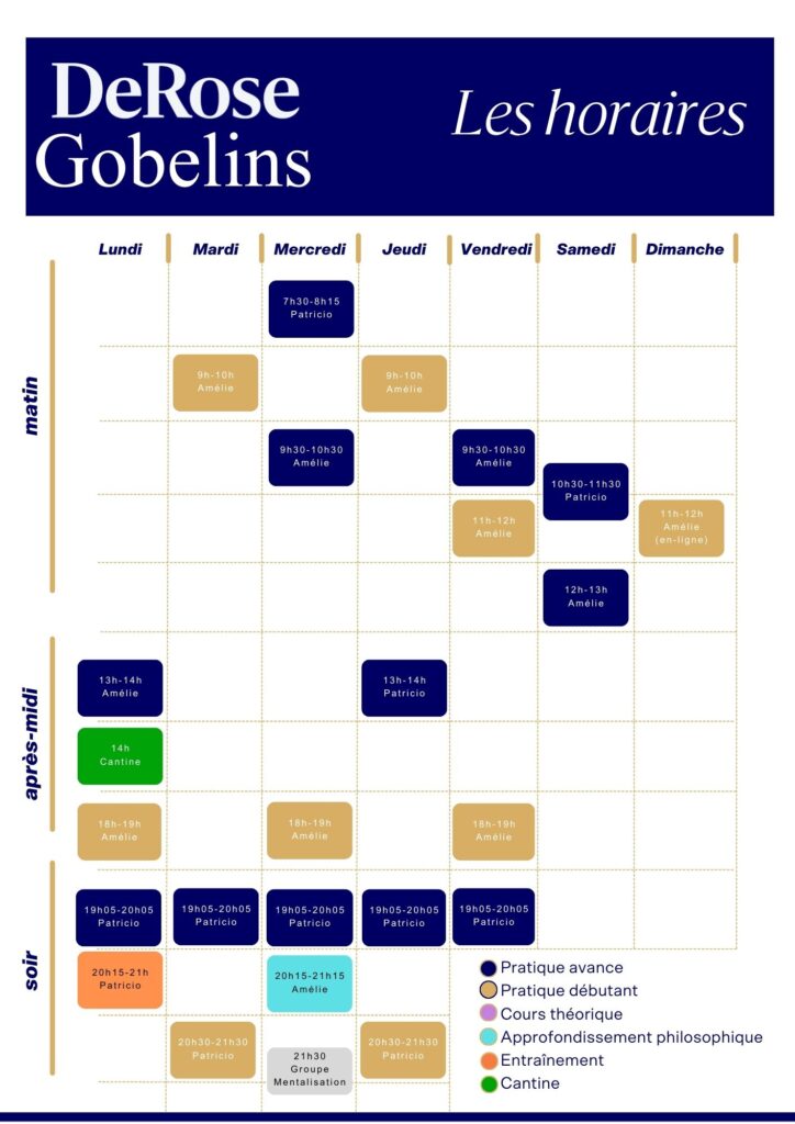 Retrouvez ici nos horaires. Choisissez, cliquez, pratiquez !